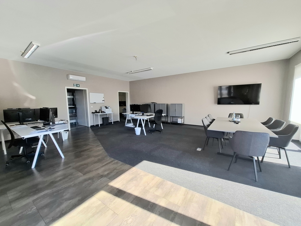 Dieses moderne Objekt wurde im Jahr 2012 errichtet und überzeugt durch eine durchdachte Raumaufteilung sowie eine zeitgemäße Ausstattung. Im Bürobereich stehen Ihnen ein separates WC sowie eine kleine Küche zur Verfügung. Die Küche wird mit 30 € monatlich bepreist. Zusätzlich befindet sich im 1. Obergeschoss eine weitere Küche mit Aufenthaltsraum. Dort können auch die gemeinschaftlich genutzten Damen- und Herrentoiletten genutzt werden. Für bequemes Parken direkt am Objekt können Stellplätze separat für jeweils 25 € monatlich angemietet werden. Die Räumlichkeiten sind barrierefrei zugänglich und verfügen über eine angenehme Fußbodenheizung. Beheizt wird das Objekt über eine effiziente Gaszentralheizung, die durch eine Photovoltaikanlage unterstützt wird. Ein besonderes Plus ist das Rolltor im hinteren Bereich des Gebäudes, das sich ideal für Materialanlieferungen oder größere Transporte eignet. Die angegebene Miete versteht sich als Nettomiete, zuzüglich der gesetzlichen Mehrwertsteuer.Lage