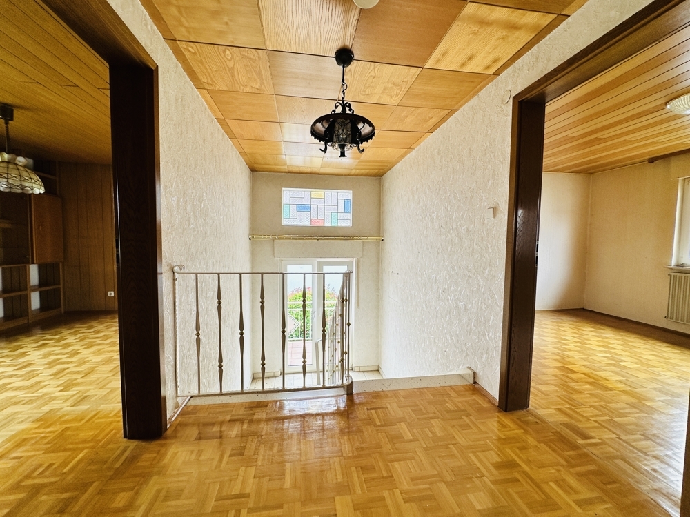 Das in einer Sackgasse gelegene Einfamilienhaus befindet sich in einer ruhigen und begehrten Wohngegend, ideal für Familien. In der Nähe befinden sich Schulen, Einkaufsmöglichkeiten, öffentliche Verkehrsmittel sowie Freizeit- und Erholungsangebote. Dieses charmante Einfamilienhaus wurde vermutlich in den 30er Jahren gebaut und 1971 erweitert und besticht durch seine durchdachte Raumaufteilung. Es bietet eine Wohnfläche von ca. 115 m², die sich auf zwei Etagen verteilt. Beim Betreten des Hauses gelangen Sie in einen geräumige Flur, der einen einladenden ersten Eindruck vermittelt. Die großzügige Küche befindet sich im Erdgeschoss und bietet viel Platz für kulinarische Aktivitäten. Das Wohn- und Esszimmer bietet ausreichend Platz für große Familientreffen und Es ist der ideale Ort für Entspannung und gemeinsame Stunden mit der Familie. Es hat direkten Zugang zur Terrasse, die im Sommer zum zweiten Wohnzimmer wird. Praktisch gelegen, befindet sich ein separates WC, das durch eine Tür direkt in das Badezimmer führt. Dieses ist mit einer begehbaren Dusche ausgestattet. Das Obergeschoss bietet Platz für den privaten Rückzugsbereich der Familie. Es gibt drei geräumiges Zimmer mit viel Tageslicht und Platz für einen großen Kleiderschrank. Zusätzlich gibt es noch ein großes Durchgangszimmer, dieses könnte z.B. als Ankleidezimmer genutzt werden. Das Haus ist unterkellert und bietet zusätzlichen Strauraum. Das Nebengebäude erweitert die Nutzungsmöglichkeiten des Hauses. Es gibt einen großzügigen Abstellraum/Partyraum, der sich perfekt für Feierlichkeiten oder als zusätzlicher Stauraum eignet. Ein weiterer separater Raum, der als Werkstatt oder Abstellraum genutzt werden kann, ist ebenfalls vorhanden. Seitlich von Haus befindet sich der Hof mit angrenzendem, gepflegtem Garten. Dieser lädt zum Verweilen und Entspannen im Freien ein.Lage