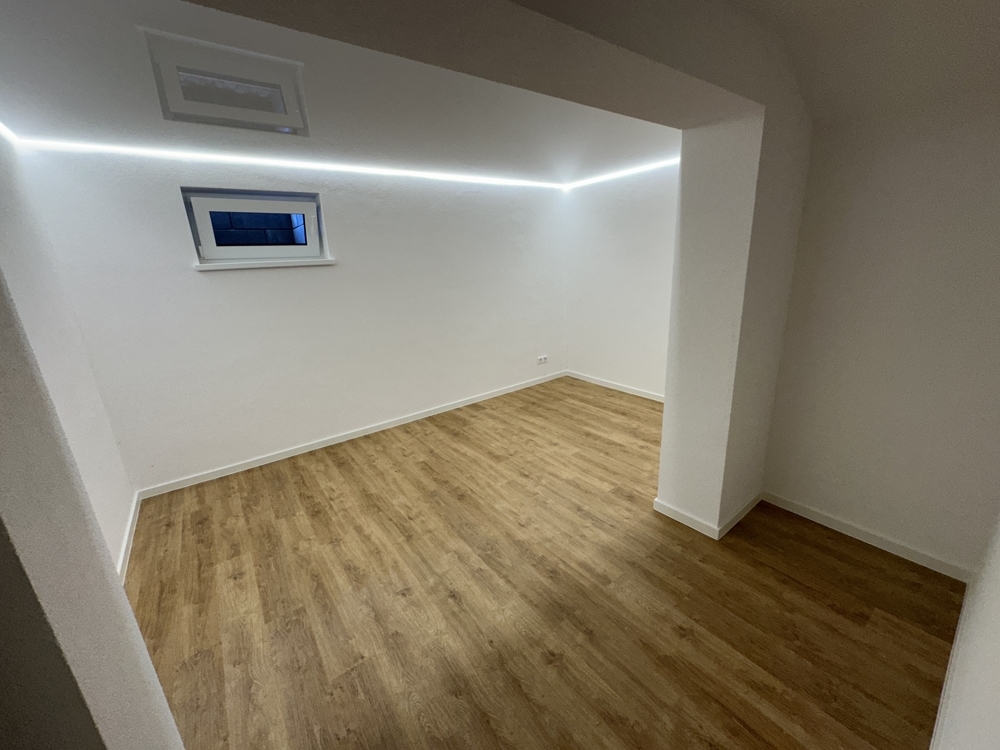Willkommen in Ihrem neuen Zuhause: ein exklusives, neu renoviertes Einfamilienhaus, das durch seine luxuriöse Ausstattung und durchdachte Raumaufteilung überzeugt. Die Immobilie bietet großzügigen Wohnraum auf mehreren Ebenen. Der wunderschön angelegte Garten mit Rollrasen, zusätzliche Stellplätze im Hof sowie moderne Ausstattungselemente wie Spanndecken und neue, stilvolle Bäder machen dieses Haus zu einem wahren Wohntraum. Im Erdgeschoss befindet sich ein großer, offener Wohn- und Essbereich mit großen Fenstern. Diese sorgen für viel Tageslicht und bieten direkten Zugang zum Garten. Im großzügigen Garten können sie entspannte Stunden mit der Familie und Freunde verbringen. Neben des Wohn- und Essbereich befindet sich die Küche mit angrenzender Abstellkammer, die zusätzlich Stauraum bietet. Ein stilvoll gestaltetes Gäste-WC bietet Komfort für Besucher. Im Erdgeschoss befindet sich noch ein weiterer Raum, der als Arbeitszimmer oder zusätzliches Schlafzimmer genutzt werden kann. Im Obergeschoss befindet sich das luxuriöse Badezimmer mit hochwertigen Armaturen und stilvollen Fliesen. Vier geräumige Schlafzimmer bieten ausreichend Platz für die gesamte Familie und ermöglichen vielfältige Gestaltungsmöglichkeiten. Weitere Räume zur individuellen Nutzung und ein zweites Duschbad befinden sich im Keller. Zudem bietet der Speicher weiteres Ausbaupotenzial. Der gepflegte Garten mit Rollrasen lädt zum Entspannen und Genießen ein. Hier können Sie Ihre Freizeit im Grünen verbringen. Neben der geräumigen Garage stehen Ihnen im Hof zusätzlich Stellplätze zur Verfügung, sodass ausreichend Platz für mehrere Fahrzeuge vorhanden ist.Lage