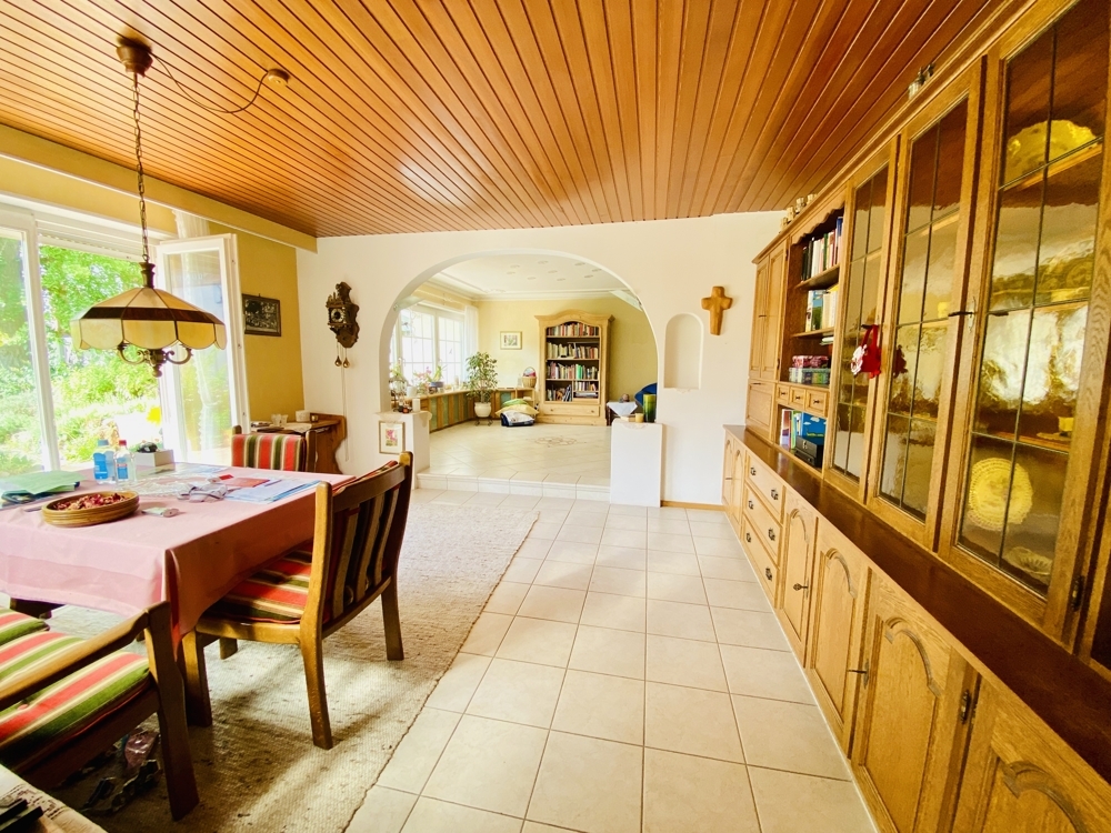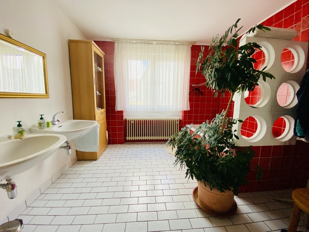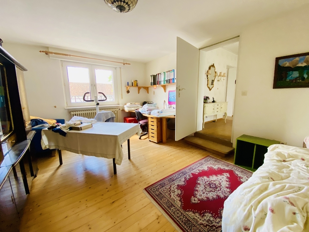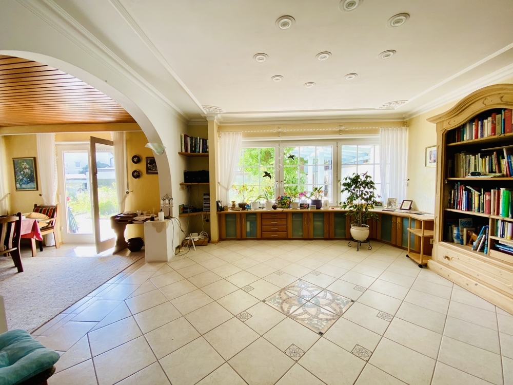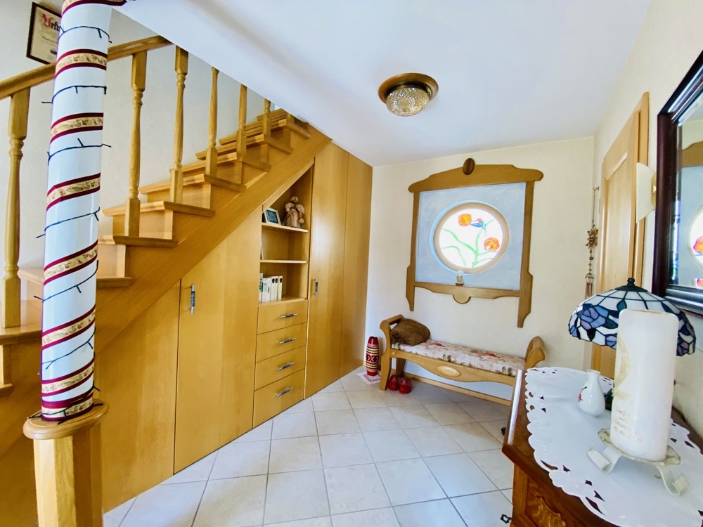 Einfamilienhaus mit umfassender Ausstattung und teilweise modernisierten Elementen Dieses Einfamilienhaus verbindet charmante Bestandselemente mit modernen Ergänzungen und liegt in einer ruhigen Wohngegend. Das Haus bietet sowohl Komfort als auch funktionale Ausstattung für eine Familie. Erdgeschoss: Der geräumige Wohnbereich ist mit einer Fußbodenheizung ausgestattet, die im Jahr 2001 installiert wurde. Große Fenster lassen viel Tageslicht herein, und teils elektronische Rollläden sorgen für ein zusätzlichen Komfort. Die Einbauküche aus 2018 verfügt über moderne elektrische Hängeschränke und hochwertige Geräte, die das Kochen zum Vergnügen machen. Ein Gäste-WC ist ebenfalls im Erdgeschoss vorhanden, was den Komfort für Besucher erhöht. Vom Wohnbereich aus gibt es direkten Zugang zum gepflegten Garten, in dem sich ein Brunnen befindet, der zur Bewässerung genutzt werden kann. Im Haus befinden sich zwei Bäder, die ideal für eine große Familie sind. Obergeschoss: Im OG gibt es mehrere Schlafzimmer, die individuelle Rückzugsmöglichkeiten bieten. Die Balkone, die 2015 mit neuen Geländern ausgestattet wurden, bieten eine schöne Aussicht auf den Garten und laden zum Verweilen ein. Der Neubau der Garage und des Hinterhauses, sowie die umfassende Sanierung des Altbaus erfolgte 1971. Das Garagentor wurde 2001 elektrifiziert und bietet komfortablen Zugang. Das moderne Hoftor ist mit einer Kamera ausgestattet. Dieses Haus bietet eine gelungene Kombination aus traditionellem Charme und modernen Annehmlichkeiten und ist ideal für Familien, die eine ruhige, gut ausgestattete Wohnumgebung suchen.Lage