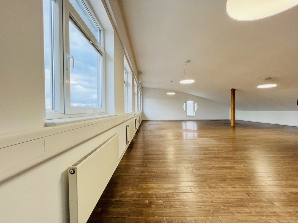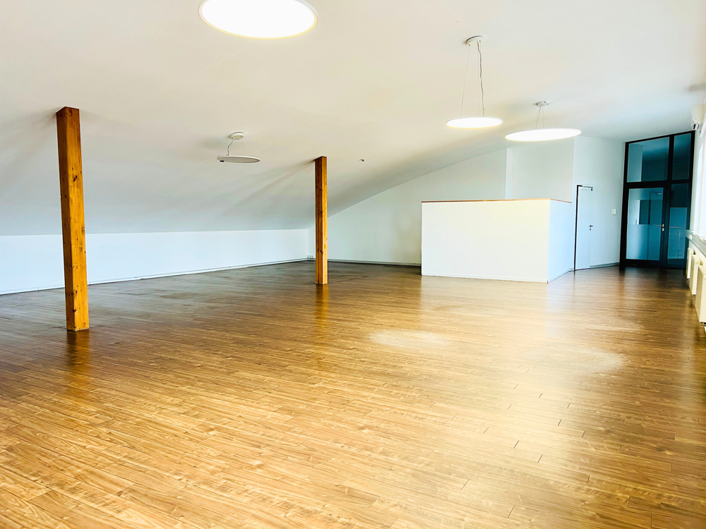 Exklusives Büro im Dachgeschoss – Ihr neues Büro in Jockgrim Dieses außergewöhnliche Büro im Dachgeschoss eines gepflegten Gebäudes in Jockgrim bietet auf insgesamt 141 m² eine ideale Arbeitsumgebung für Ihr Unternehmen. Die lichtdurchfluteten Räumlichkeiten bestechen durch eine moderne Ausstattung und ein angenehmes Arbeitsklima. Die Bürofläche umfasst einen äußert großzügigen Arbeitsraum mit 107m², eine gut ausgestattete Küche sowie einen einladenden Foyerbereich, der den perfekten ersten Eindruck hinterlässt. Ein praktisches Highlight ist die Garderobe, die den Komfort für Ihre Mitarbeiter und Kunden zusätzlich erhöht. Dank der zwei Klimaanlagen genießen Sie auch an heißen Tagen eine angenehme Raumtemperatur. Von der Dachterrasse aus haben Sie zudem eine großartige Aussicht auf die Umgebung – ideal für eine kleine Auszeit oder inspirierende Besprechungen. Abgerundet wird das Angebot durch drei Stellplätze im Hof, die Ihnen und Ihren Mitarbeitern eine bequeme Parkmöglichkeit bieten. Die Stellplatzmiete ist in der Warmmiete mit einberechnet. Machen Sie dieses Büro zu Ihrem neuen Firmensitz und profitieren Sie von einer einzigartigen Lage und erstklassiger Ausstattung! Bei der angegeben Miete handelt es sich um die Nettomiete ohne MwSt.Lage