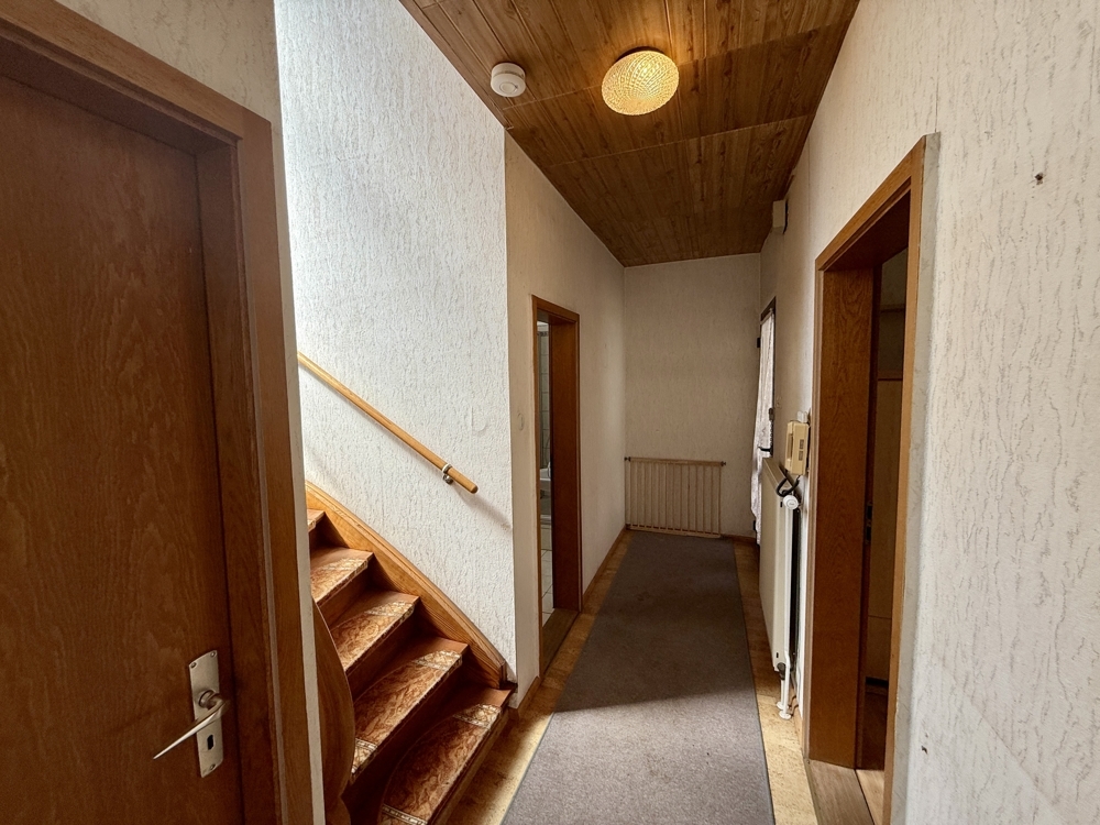 Dieses charmante Einfamilienhaus bietet Ihnen die ideale Grundlage für individuelles Wohnen mit viel Potenzial zur eigenen Gestaltung. Das Haus befindet sich in einer angenehmen Wohnlage und eignet sich hervorragend für Familien, die handwerkliches Geschick mitbringen und ihren Wohntraum nach eigenen Vorstellungen verwirklichen möchten. Im Erdgeschoss finden Sie eine geräumige Küche mit direktem Zugang zum Wohnbereich vor. Das helle Wohn-Esszimmer mit viel Tageslicht lädt zu geselligen Stunden mit der Familie und Freunden ein. Das Badezimmer verfügt über eine Badewanne und eine Dusche. Das Obergeschoss hält vier Zimmer vor, welche als Schlafzimmer, Kinder- oder Gästezimmer und Büro genutzt werden können. Eines davon ist ein Durchgangszimmer. Des Weiteren befindet sich hier noch ein WC und der kleine Balkon mit Blick in den Hof. Für Ihr Hab und Gut finden Sie Abstellmöglichkeiten im Keller sowie im Nebengebäude. Dies bietet Ihnen vielseitige Nutzungsmöglichkeiten, wie z.B. als Werkstatt. Ihre Autos finden Platz in der Garage sowie im Hof. Der kleine Pflanzgarten ist ideal für Kräuter oder Gemüsebeete, kann aber auch als kleine Ruheoase oder Spielgarten für Ihre Kinder umgestaltet werden. Überzeugen Sie sich selbst von den Möglichkeiten dieses Hauses und lassen Sie Ihrer Kreativität freien Lauf - wir freuen uns auf Ihre Anfrage!Lage