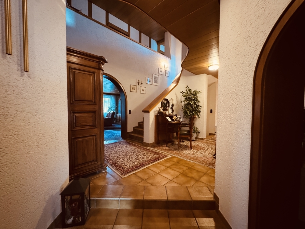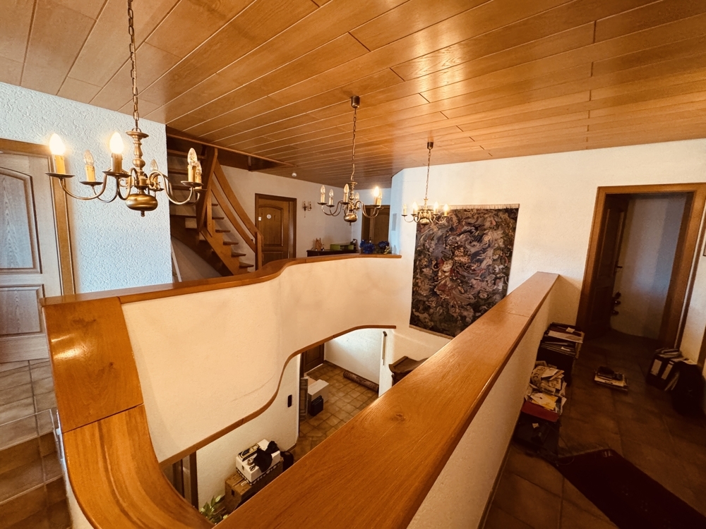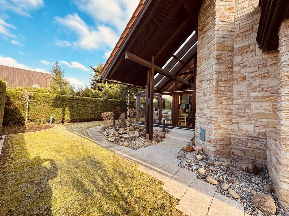 Dieses großzügige Anwesen in Top-Lage von Kandel verbindet anspruchsvolles Wohnen mit den idealen Voraussetzungen für Arbeiten, Familie und Freizeit. Mit einer Wohnfläche von ca. 271 m² bietet es vielseitige Nutzungsmöglichkeiten, sei es für eine Großfamilie, Wohnen und Arbeiten unter einem Dach oder den Umbau inklusive einer Einliegerwohnung. Das Erdgeschoss besticht durch eine durchdachte Raumaufteilung und großzügige Wohnflächen: - Küche mit kleiner Essecke - großes Esszimmer mit angrenzendem Wohnzimmer und direktem Zugang zur Terrasse - Bürobereich: Großzügig geschnitten, ideal für ein Homeoffice oder den Empfang von Geschäftspartnern - Kaminzimmer: Ein gemütlicher Rückzugsort mit angrenzendem Wintergarten, der zu jeder Jahreszeit für Entspannung sorgt - Bad, Gäste-WC - der gepflegte Garten und die großzügige Terrasse laden zu Freizeit und Geselligkeit ein - Doppelgarage: Direkter Zugang vom Haus aus Im Obergeschoss finden Sie viel Platz für die Familie oder Gäste: - Schlafzimmer: Großes Hauptschlafzimmer für Ruhe und Erholung mit kleinem Balkon - Kinderzimmer: Drei separate Kinderzimmer, die individuell nutzbar sind - Gästezimmer: Für Übernachtungsbesuch oder zusätzliche Nutzungsmöglichkeiten - Badezimmer: Geräumig ausgestattet - Galerie: Lichtdurchfluteter Bereich mit Zugang zur Dachterrasse - Aufgang zum Dachstudio mit weiterem Balkon Den Kellerbereich können Sie zu Ihrem persönlichen Highlight umgestalten: - vorhandenes Schwimmbad mit Aufgang zum Garten - Sauna und Duschbereich: Perfekt für entspannte Abende - Kühlraum für die Lagerung Dieses großzügige Einfamilienhaus vereint Stil, Komfort und Funktionalität in einer der begehrtesten Wohnlagen von Kandel. Die ruhige Umgebung und die Nähe zur City machen diese Immobilie besonders attraktiv. Sie ist ideal für Menschen, die Raum für ihre Familie, ihr Unternehmen oder ihre Hobbys suchen, und bietet mit seinen Sonderausstattungen höchste Lebensqualität. Wir freuen uns auf Ihre Anfrage.Lage