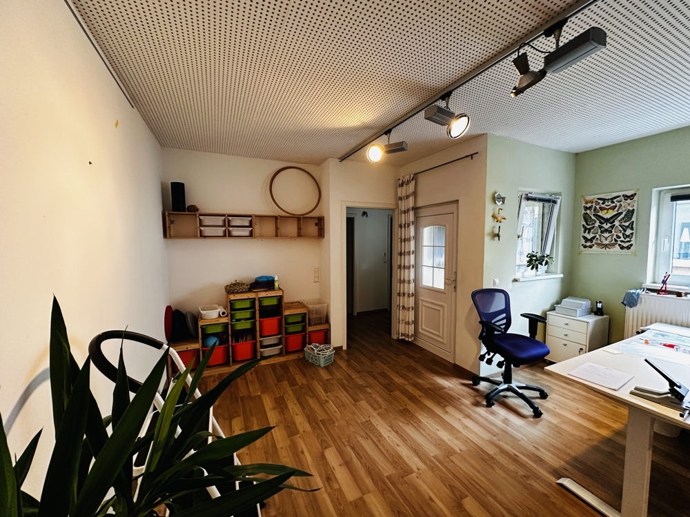 Zur Vermietung stehen großzügige und lichtdurchflutete Praxisräume mit einer Gesamtfläche von ca. 146 m². Die Räumlichkeiten bieten eine ideale Arbeitsumgebung für unterschiedliche Gesundheits- und Dienstleistungsberufe. Die Praxis ist derzeit in vier separate Behandlungs- bzw. Arbeitsräume unterteilt und verfügt über einen einladenden Empfangsbereich sowie einen gut nutzbaren Flur, der alle Räume sinnvoll miteinander verbindet. Der Eingangsbereich ist sowohl über eine Treppe als auch barrierefrei über eine Rampe zugänglich – ideal für Patient:innen oder Kund:innen mit eingeschränkter Mobilität. Ausstattung im Überblick: 4 helle, gut geschnittene Praxisräume Empfangsbereich / Wartebereich im Eingangsbereich 2 Abstellräume für Material oder Technik Küche mit Anschlussmöglichkeiten für Pausenbereich 2 separate Toiletten Barrierefreier Zugang durch Rampe am Eingang Einrichtung kann nach Absprache mit dem aktuellen Mieter übernommen werden Nutzungsmöglichkeiten: Die Fläche eignet sich hervorragend für: Gemeinschaftspraxen Physiotherapie Ergotherapie Logopädie Psychologische oder psychotherapeutische Praxen Heilpraktiker:innen Coaching- oder Beratungsangebote Bürogemeinschaften im Gesundheits- oder sozialen Bereich Sonstiges: Die Nebenkosten werden über eine Hausverwaltung abgerechnet und beinhalten bereits die Heizkosten. Besichtigungstermin: Wir freuen uns über Ihre Anfrage und stehen Ihnen gerne für einen persönlichen Besichtigungstermin zur Verfügung!Lage