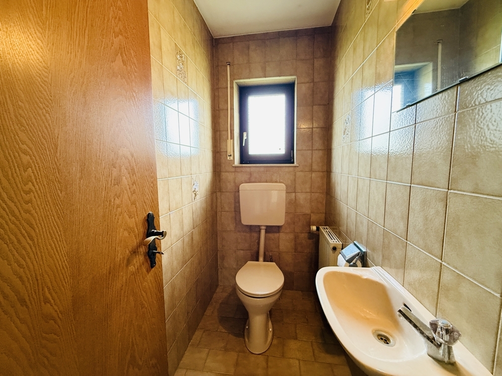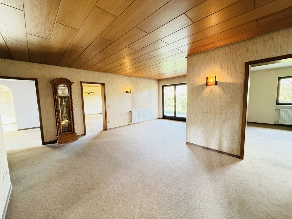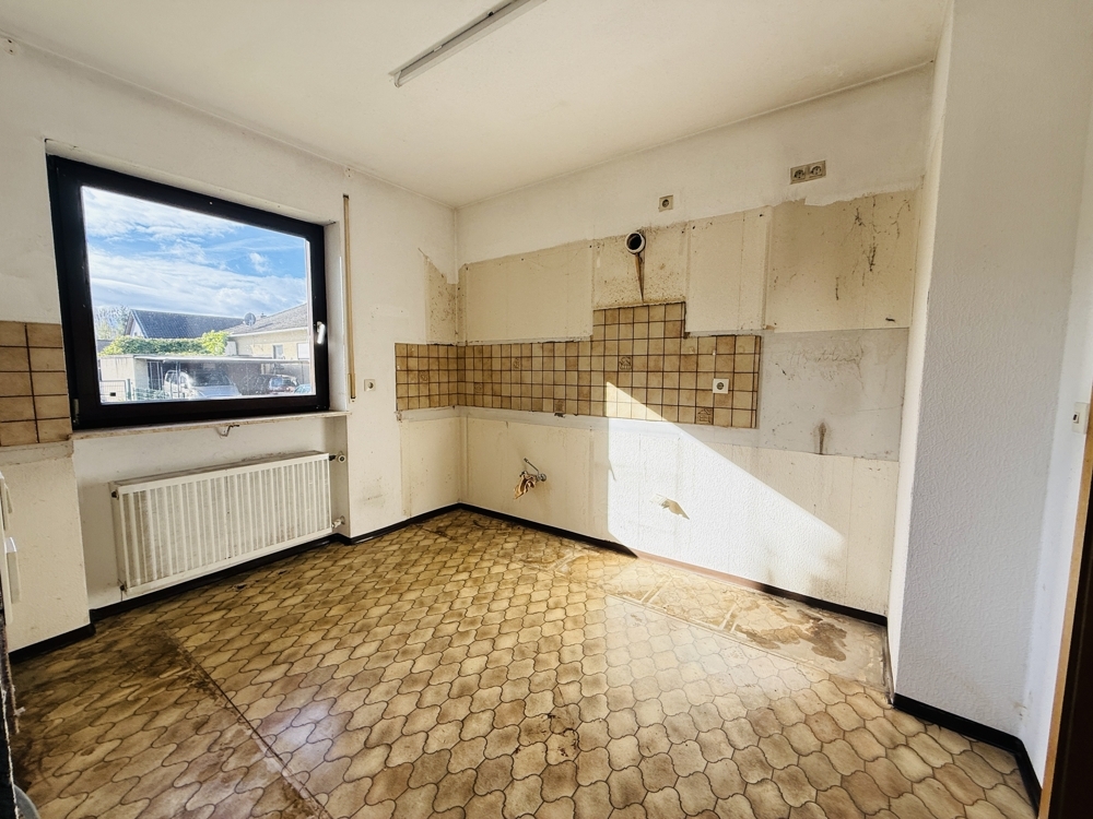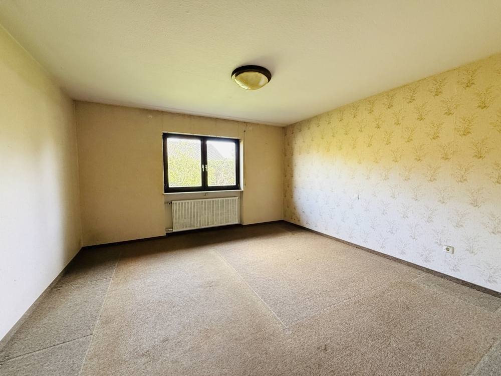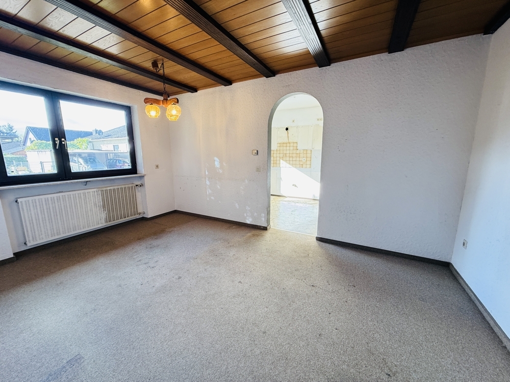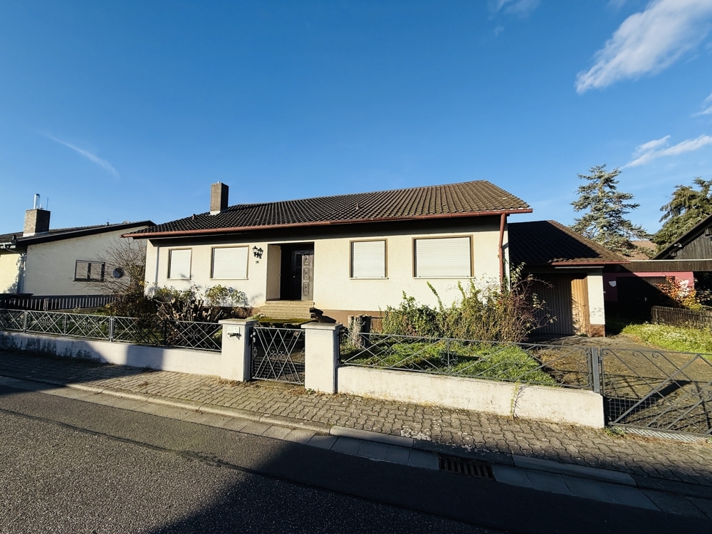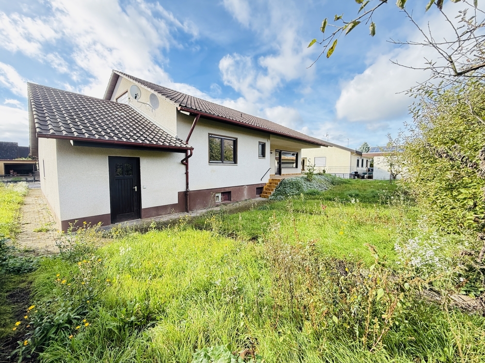 Dieser großzügig geschnittene Bungalow in ruhiger Wohnlage bietet eine hervorragende Grundlage für individuelle Wohnträume. Mit durchdachter Raumaufteilung, großem Garten und viel Potenzial zur Aufwertung ist das Haus ein echtes Handwerkerobjekt mit Perspektive. Im Erdgeschoss empfängt Sie ein weitläufiger Flur, der nicht nur Zugang zu allen Räumen bietet, sondern auch Platz für eine gemütliche Leseecke oder einen großen Esstisch lässt. Links vom Eingang befindet sich das Esszimmer mit direktem Zugang zur Küche und einer angrenzenden Abstellkammer. Daneben liegt das helle, großzügige Wohnzimmer mit großen Fenstern und direktem Zugang in den Garten. Geradeaus vom Eingang führt eine Balkontür ebenfalls in den Garten. Direkt daneben liegen das Gäste-WC sowie eines der beiden Schlafzimmer. Der Zugang zum Spitzboden befindet sich ebenfalls im Flur. Dieser ist über eine vollwertige Treppe erreichbar und bietet mögliches Ausbaupotenzial – vorbehaltlich baurechtlicher Genehmigung. Ein weiteres Schlafzimmer sowie ein Badezimmer mit Dusche und Badewanne komplettieren das Raumangebot im Erdgeschoss. Das Haus ist vollständig unterkellert und bietet großzügigen Stauraum.Die Heizungsanlage ist als zentrale Ölheizung ausgeführt. Die integrierte Garage ist direkt über den Keller zugänglich. Ein großer Garten hinter dem Haus sowie ein gepflegter Vorgarten bieten zusätzliche Möglichkeiten zur persönlichen Gestaltung. Das Objekt überzeugt mit einem sehr guten Schnitt und solider Substanz – eine umfassende Modernisierung ist einzuplanen. Ideal für Handwerker oder Käufer mit Ideen und Tatkraft. Wir freuen uns über Ihre Anfrage und vereinbaren gerne einen Besichtigungstermin mit Ihnen.Lage