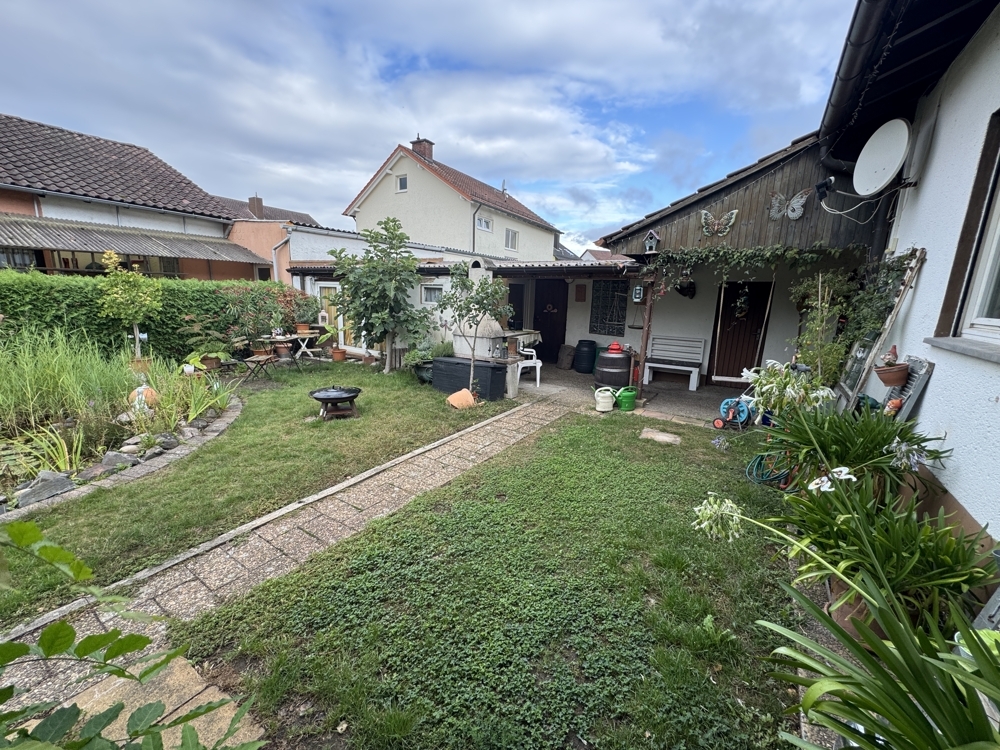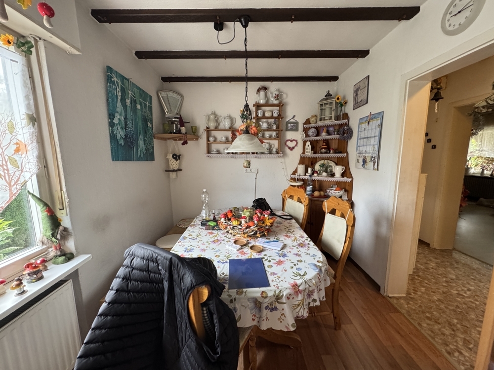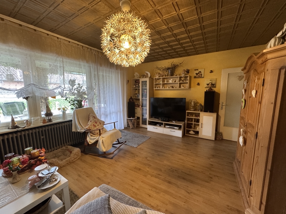 Dieser charmante, renovierungsbedürftige Bungalow bietet eine ideale Grundlage, um Ihre Wohnträume wahr werden zu lassen. Das Haus überzeugt durch seine durchdachte Raumaufteilung, den großen Garten mit zwei Terrassen und vielfältige Nutzungsmöglichkeiten – sowohl für Familien als auch für Paare, die Wohnen auf einer Ebene zu schätzen wissen. Im Erdgeschoss erwarten Sie eine gemütliche Küche mit integrierter Essecke, ein helles Wohnzimmer mit Zugang zur Terrasse und zum Garten, sowie zwei Schlafzimmer – eines davon mit direktem Zugang zur zweiten Terrasse. Das Tageslichtbad rundet das Raumangebot auf dieser Ebene ab. Ein weiteres Zimmer im Erdgeschoss bietet Zugang über eine Treppe in den Kellerbereich. Dort stehen Ihnen zwei zusätzliche Räume zur Verfügung, die derzeit als Gästezimmer genutzt werden. Zudem gibt es einen Vorratsraum, einen Abstellraum sowie einen Wasch- und Heizraum. Für Ihr Fahrzeug ist gesorgt: Eine Garage sowie ein Stellplatz stehen Ihnen direkt am Haus zur Verfügung. Raumaufteilung (Erdgeschoss) - Küche mit Essecke - Wohnzimmer mit Terrassen- und Gartenzugang - 2 Schlafzimmer (davon eins mit Zugang zur 2. Terrasse) - Badezimmer - Zimmer mit Treppe zum Keller Kellergeschoss - 2 Gästezimmer - Vorratsraum - großer Abstellraum - Wasch- und Heizraum Außenbereich - 2 Terrassen - Großzügiger Garten - Garage und Stellplatz Ein Bungalow mit viel Platz, Potenzial und Charme – perfekt für alle, die ihr neues Zuhause nach eigenen Vorstellungen modernisieren und gestalten möchten. Mit etwas handwerklichem Geschick lässt sich hier ein wahres Schmuckstück schaffen.Lage