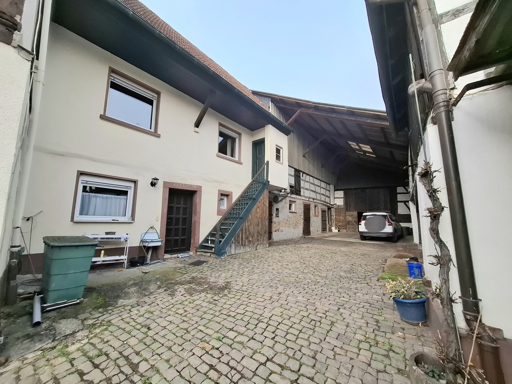 Dieses außergewöhnliche Fachwerkhaus aus dem Jahr 1713 bietet auf 222,70 m² Wohnfläche und einem 965 m² großen Grundstück eine seltene Kombination aus historischem Charme und großem Entwicklungspotenzial. Das Anwesen befindet sich in Herxheim und umfasst neben dem Wohnhaus eine riesige Scheune sowie ehemalige Stallungen, die vielfältige Nutzungsmöglichkeiten eröffnen. Das Haus ist renovierungsbedürftig, bildet jedoch eine solide Grundlage für alle, die historischen Bestand erhalten und nach ihren eigenen Vorstellungen gestalten möchten. Das Gebäude wurde zuletzt als Zweifamilienhaus genutzt, verfügt jedoch über einen gemeinsamen Eingang. Die vielen Zimmer und die großzügige Raumaufteilung machen das Objekt besonders attraktiv für große Familien oder für Menschen, die Wohnen und Arbeiten unter einem Dach verbinden möchten. Im Erdgeschoss befinden sich vier Zimmer, eine Küche, ein Hauswirtschaftsraum sowie ein Badezimmer. Da dieser Bereich noch bis zum 31.12.2025 bewohnt ist, konnten hier keine Innenaufnahmen erstellt werden. Vom Erdgeschoss aus besteht zudem Zugang zu einem kleinen Gewölbekeller. Im Obergeschoss stehen fünf weitere Zimmer, eine Küche und ein Badezimmer zur Verfügung, sodass jedes Stockwerk über seine eigenen Wohnbereiche verfügt. Der Außenbereich überzeugt mit einem weitläufigen Hof und einem großen Grundstück, das reichlich Platz für Gartenliebhaber, Tierhaltung, Handwerksprojekte oder einfach zusätzlichen Freiraum bietet. Die imposante Scheune und die ehemaligen Stallungen runden das besondere Gesamtbild ab und bieten zusätzliche Ausbau- und Lagermöglichkeiten. Insgesamt handelt es sich um ein seltenes Angebot für Menschen, die viel Platz, historische Substanz und die Möglichkeit suchen, ein außergewöhnliches Anwesen nach ihren eigenen Wünschen zu gestalten.Lage