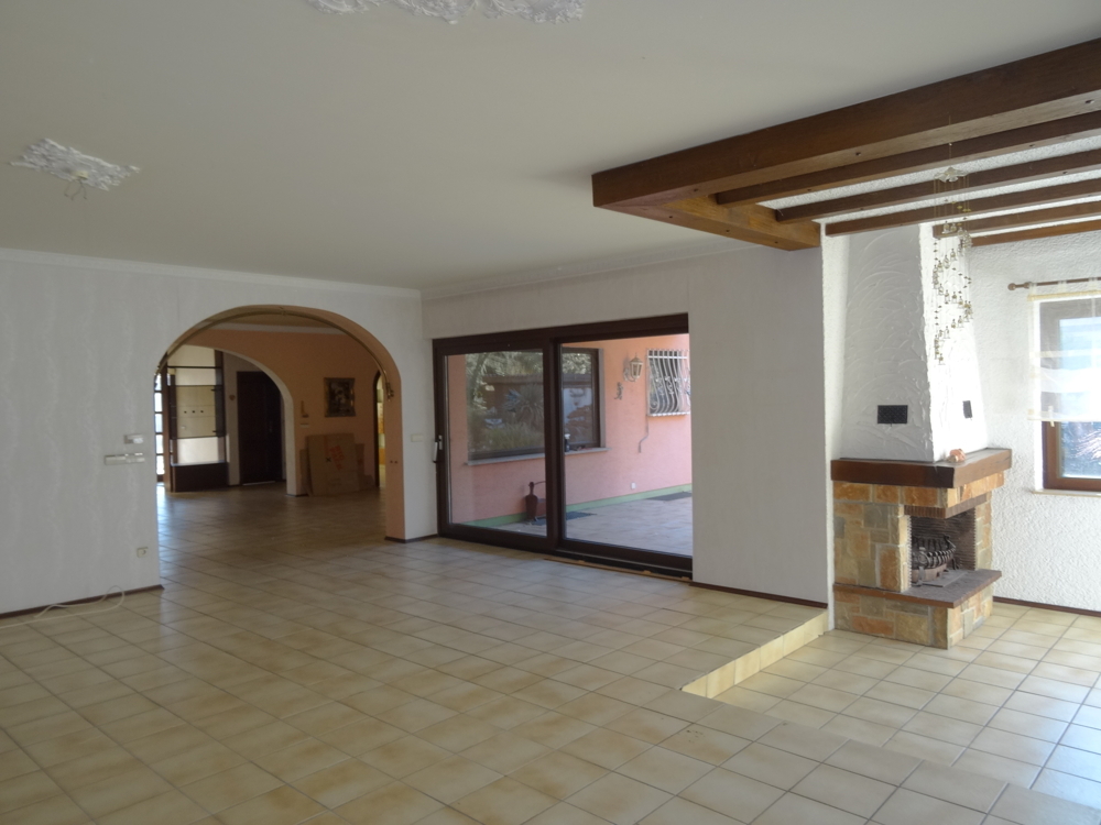 Dieses großzügige Einfamilienhaus mit tollem großen Grundstück befindet sich am Ortsrand von Rülzheim. Es bietet viel Platz für die Familie. Die Wohnfläche von 240 m² verteilt sich auf zwei Ebenen und einem ausgebauten Wohnkeller. Vom Flur aus im Erdgeschoss gelangen Sie in den großzügigen Wohn- und Essbereich mit Kaminecke und Zugang zur Küche. Von hier aus gelangen Sie auch auf die uneinsehbare Terasse und den großen Garten. Des Weiteren befindet sich im Erdgeschoss ein Abstellraum und ein kleines Bürozimmer. Von der Diele aus im Eingangsbereich befindet sich noch ein kleines Zimmer, welches bislang als Gästezimmer genutzt wurde und ein Gäste-WC ist ebenfalls vorhanden. Vom Treppenaufgang im Flur gelangen Sie in das Dachgeschoss mit drei Schlafzimmern und zwei Bädern. Das vordere Bad wurde als Kinderbad genutzt und hat Dusche/WC und einen Wäscheabwurfschacht. Das andere größere Badezimmer ist mit Dusche/WC und Badewanne ausgestattet. Von zwei Schlafzimmern aus gelangen Sie auf den Balkon mit Blick in den Garten. Im Keller haben Sie mehrere ausgebaute Wohnräume, den Heizraum und einen großen Wäschetrockenraum. Hier wäre auch eine Einliegerwohnung möglich. Zu dem Gebäude gehört noch eine große Doppelgarage mit direktem Zugang zum EG und UG. Stellplätze vor dem Haus sind ebenfalls vorhanden. Das Haus ist kurzfristig verfügbar.Lage